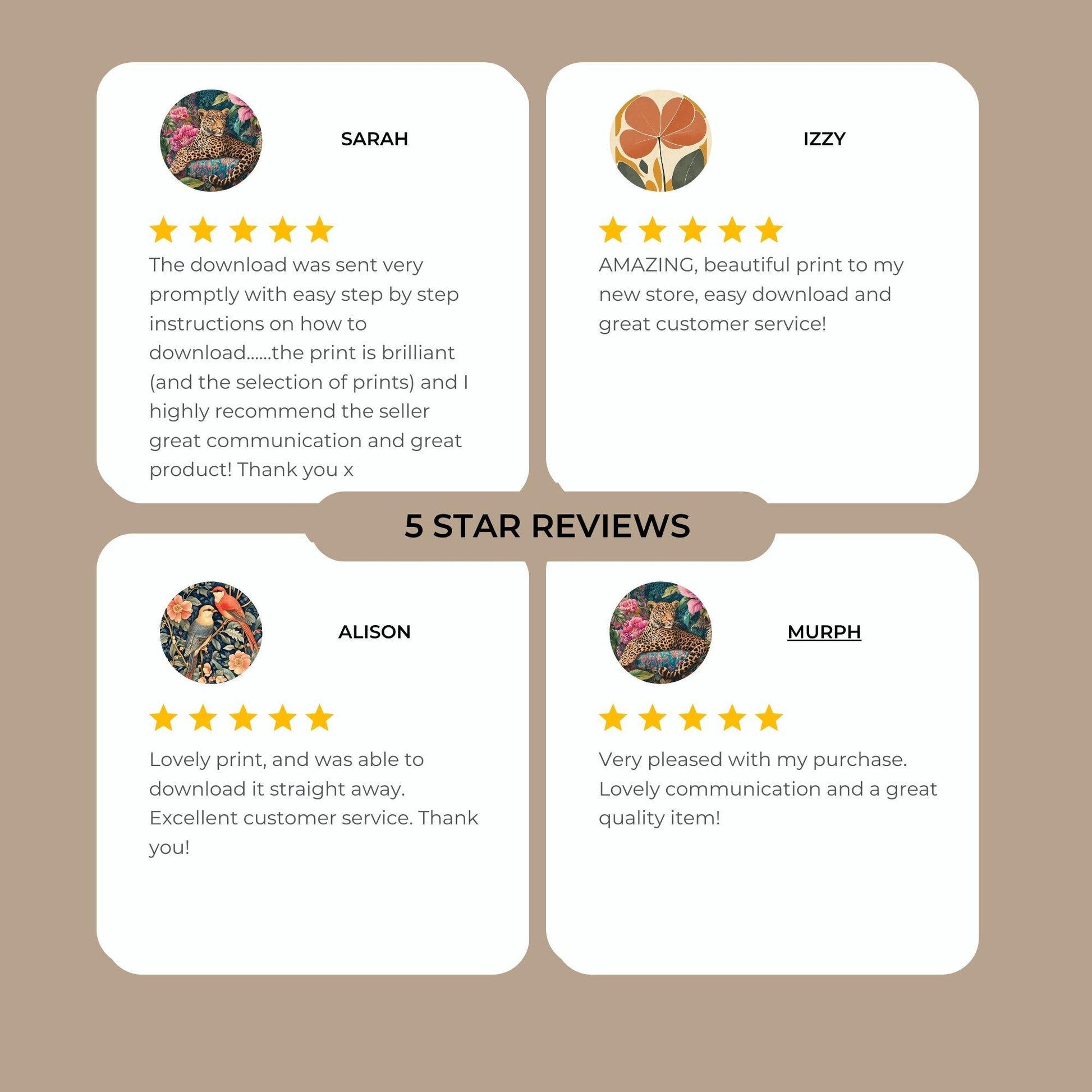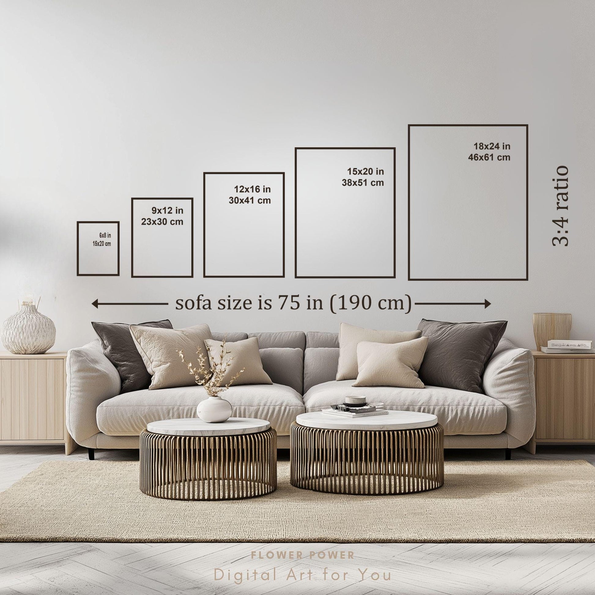 Tu compra en Flower Power incluye 6 archivos de alta resolución (300 dpi) en los siguientes tamaños: